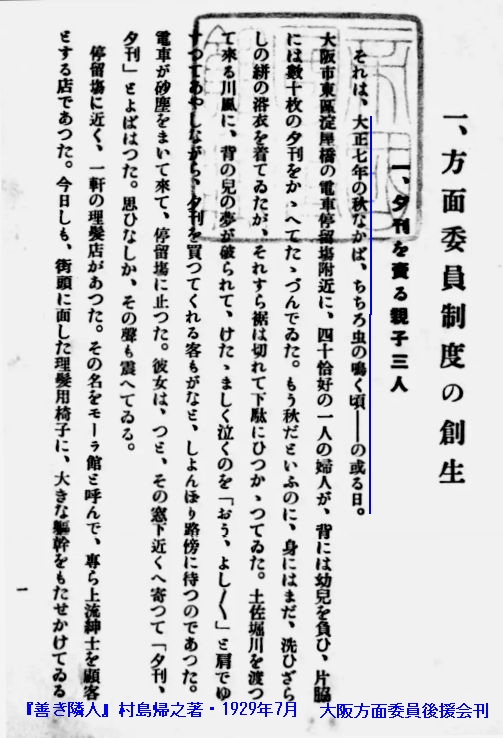 方面委員制度の発足と「夕刊売り親子」